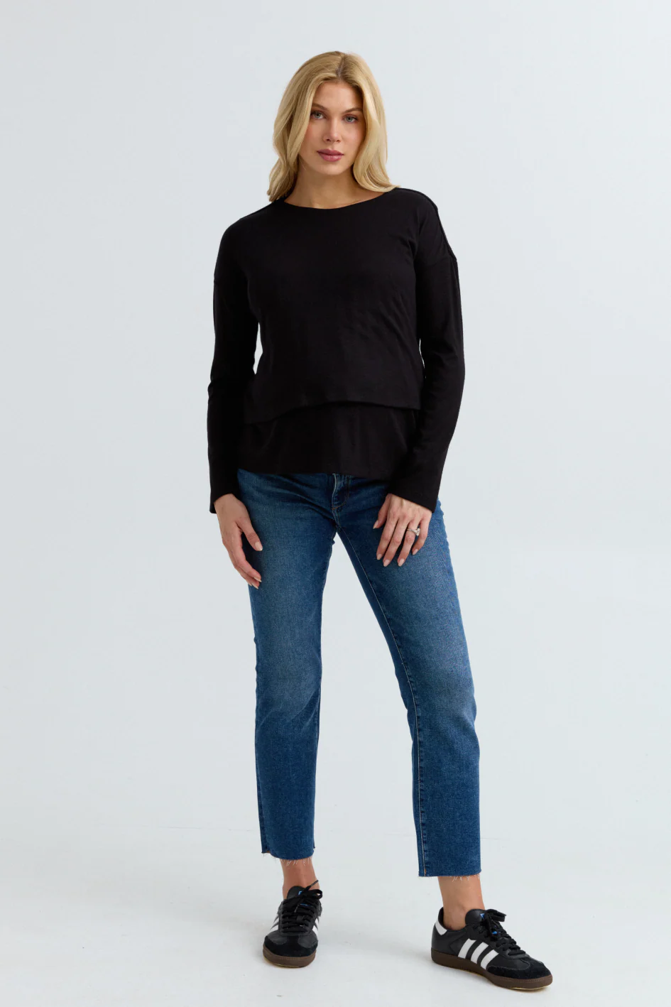 An elevated take on the classic nursing top, the Brie Nursing Sweater features a dropped overlayer with a relaxed fit, making it easy to feel both cute and comfortable at every stage of motherhood. Crafted from super-soft sweater fabric, this versatile piece is perfect for dressing up or down.