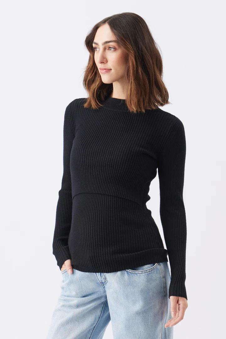 Slip into the slim fit of the Lift Up Nursing Knit. Crafted from a soft blend of viscose and nylon, this textured rib knit features an understated round neckline, long sleeves, and an easy and discreet lift-up panel for nursing. This cozy style offers a lighter alternative to your heavy winter sweaters for warmth without the weight. Style yours with denim, or with our A-Line Knit Skirt for a classic and timeless winter look.