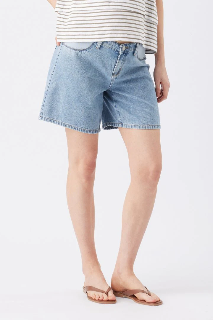 Effortlessly cool and endlessly comfortable, the Dion Denim Shorts are your go-to for laid-back summer style. Crafted from a durable blend of cotton and Lyocell, they capture the timeless appeal of non-stretch denim with a soft, breathable feel. The relaxed fit and straight leg cut create a structured yet effortless silhouette, while the elastic waistband insert sits comfortably under your growing bump or gently around your postpartum waist - making these shorts ideal for every stage of pregnancy and beyond. Designed to grow with you, these shorts will remain a staple well beyond baby’s arrival.