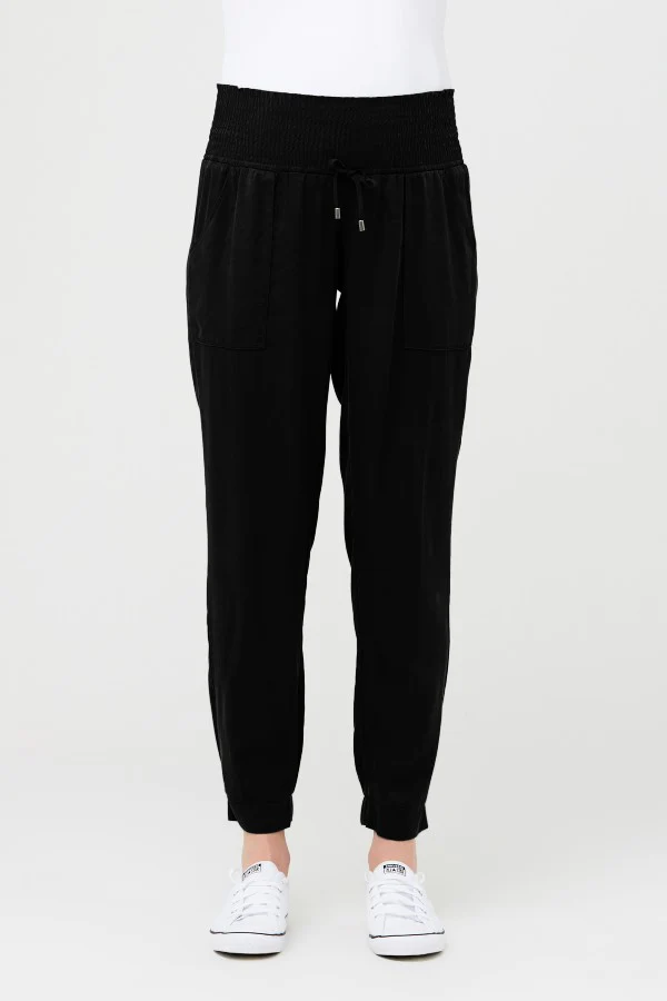 A great choice for transeasonal weather; the Off Duty Black Maternity Tencel Pant by Ripe Maternity will have you feeling comfy all day long.