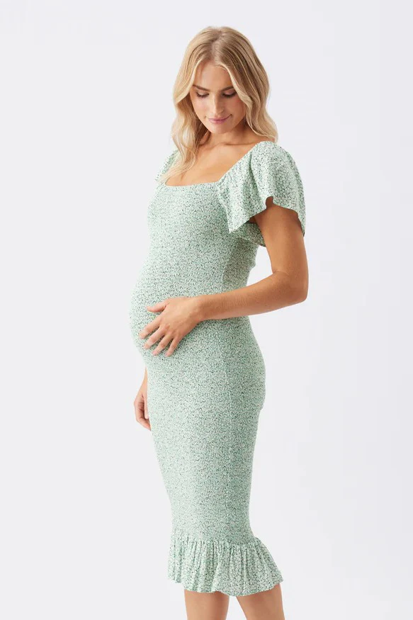 Feel super chic and show off your curves in the Selma Shirred Dress by Ripe Maternity. With a fully smocked body and playful hem frill, you will be able to wear this dress during pregnancy and beyond.